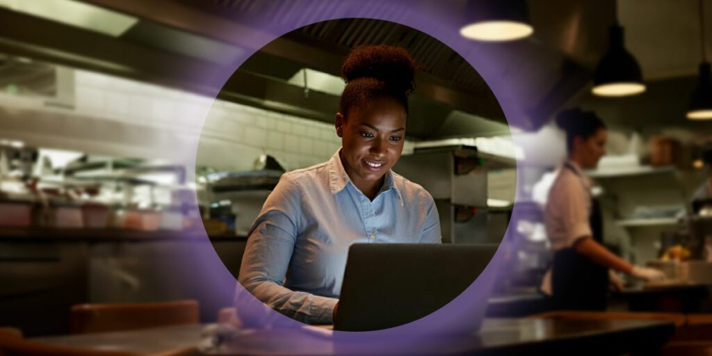 Should feature a typical multifi customer in their work environment at the moment they receive access to their credit on their laptop.
